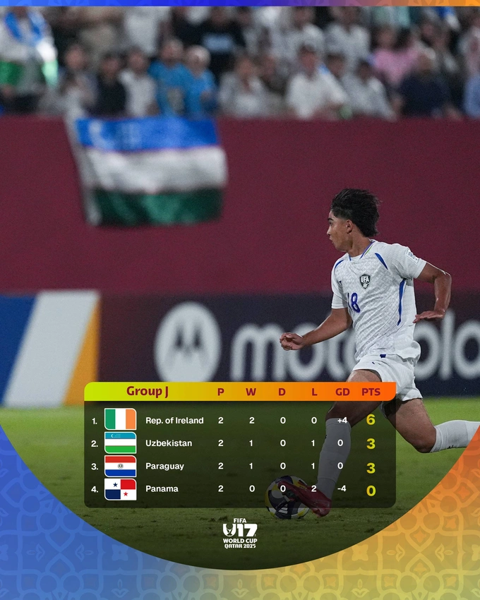 خسر منتخب أوزبكستان أمام إيرلندا بنتيجة 2-1 في بطولة العالم تحت 17 سنة لكرة القدم التي تقام في قطر.