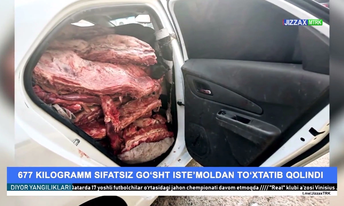 تم إيقاف 677 كجم من منتجات اللحوم غير الصالحة للاستهلاك التي كانت تُنقل من قاشقاداريا إلى طشقند في نقطة تفتيش في منطقة دوستلِك في ولاية جيزاخ. حول هذا الموضوع، أفادت الإدارة الإقليمية للشؤون الداخلية.في محطة خدمة دوريات الطرق “ماناس 14″، تم توقيف سيارتين من نوع Cobalt يقودهما سائقون من منطقة شيروقشي، وتم تفتيش الصندوق والمقصورة.