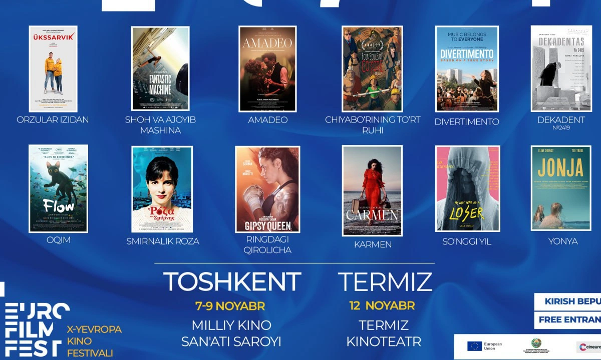 تستضيف كل من العاصمة الأوزبكية طشقند ومدينة تِرمِز فعاليات الدورة العاشرة من مهرجان الفيلم الأوروبي، الذي سيُقام في طشقند من 7 إلى 9 نوفمبر، وفي تِرمِز في 12 نوفمبر، بمشاركة 12 دولة أوروبية، وبعروض مفتوحة مجانية لجميع الجمهور.
