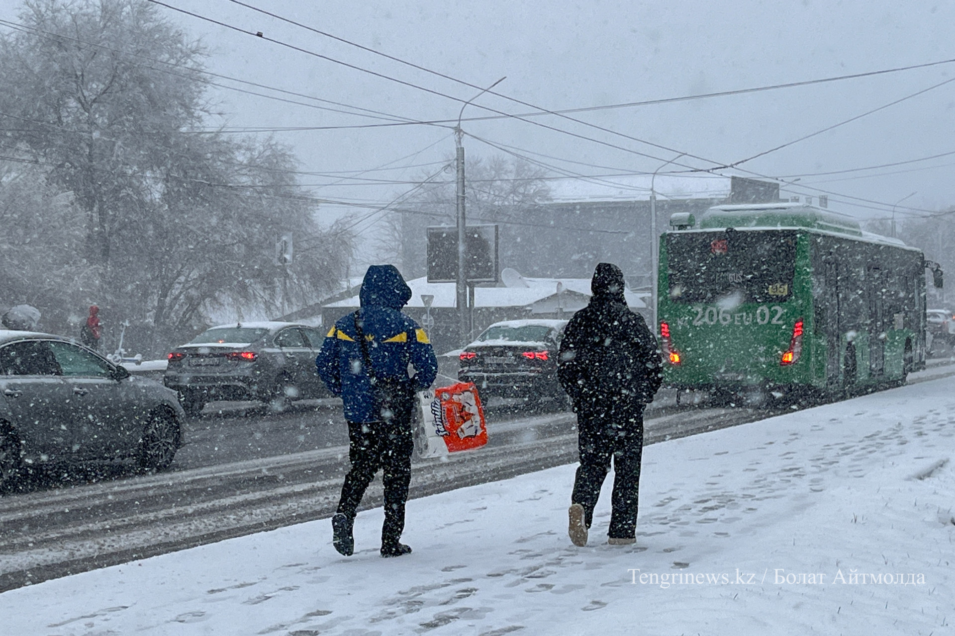 تحولت ألماتي إلى حكاية شتوية حقيقية. خلال الليل، غطت المدينة بطبقة من الثلج.
