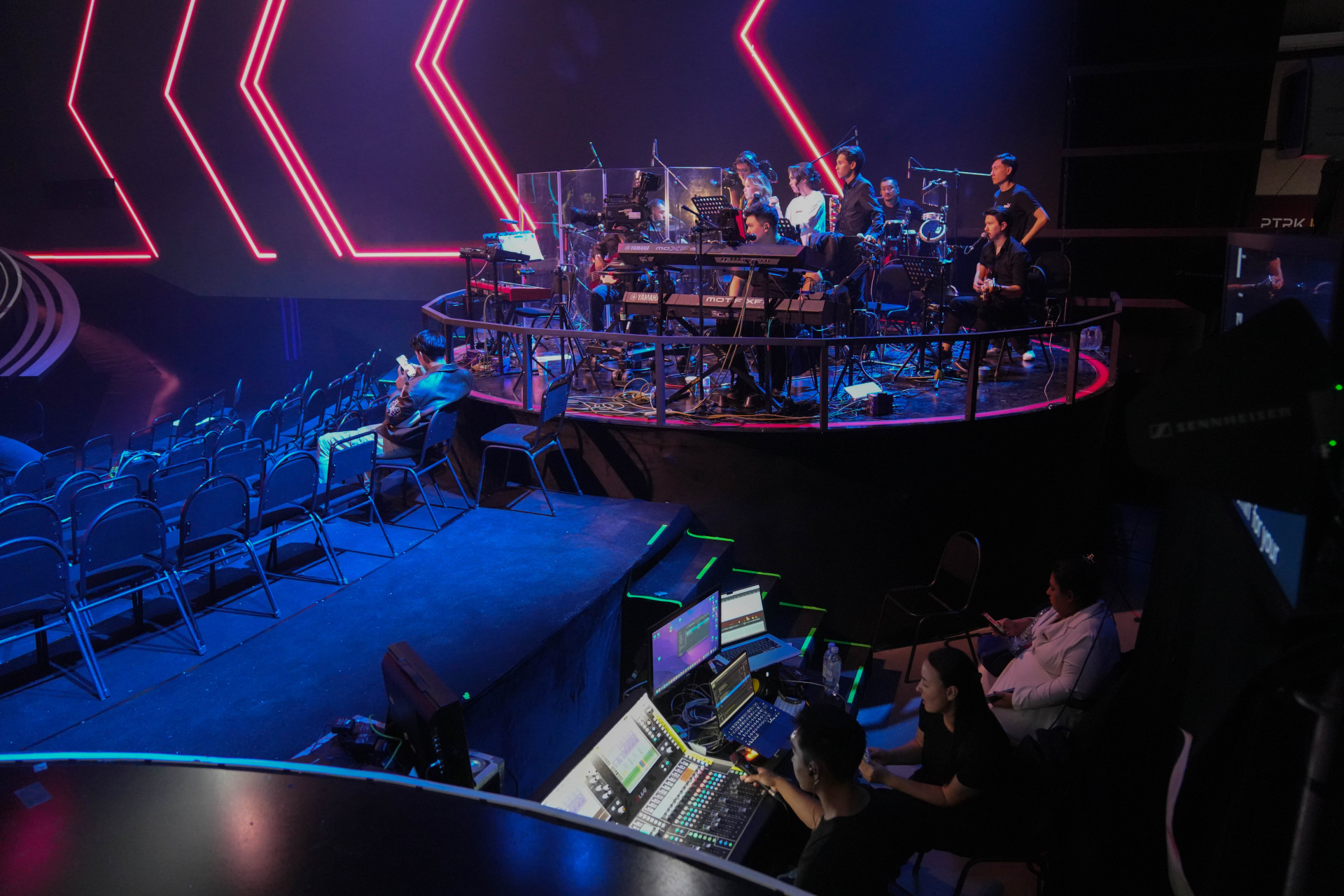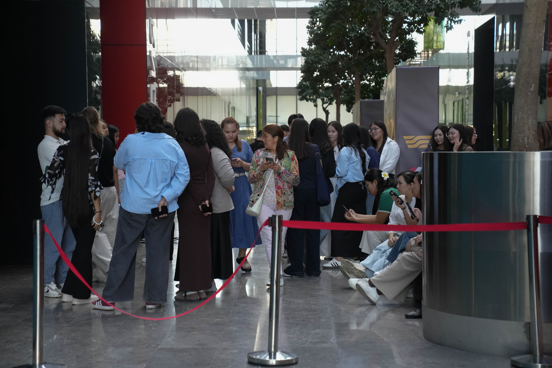 الجمهور ينتظر دوره للدخول إلى الداخل، ونحن نتسلل إلى الكواليس حيث تجري التحضيرات لتصوير الحلقة الثانية على قدم وساق.
