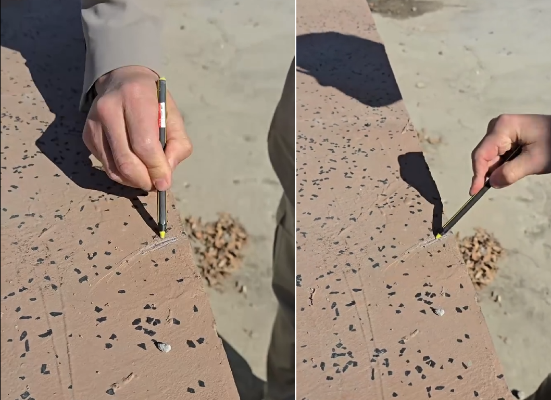 في المواقع التي أزيل منها الجرانيت وفقًا للمشروع، يجري تنفيذ عملية الخرسانة ويتم تطبيق طلاء عازل للماء AquaFix، أكد جتينيوف. وقال إن هذا الطلاء “لا يمكنه مقاومة الأضرار الميكانيكية من الأشياء الحادة”. وعلق على فيديو الناشط بأن القلم الجاف حاد بما يكفي لترك آثار على الخرسانة أو الطلاء.